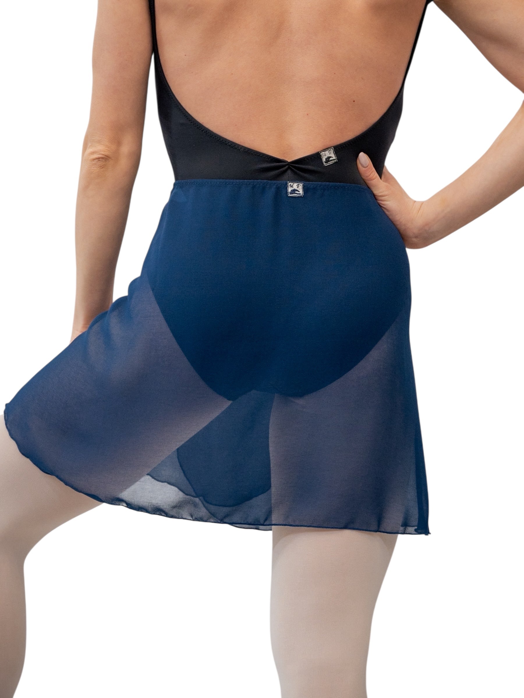 The MP345 navy short wrap skirt is perfect for use during your rehearsals or ballet classes. Designed to complement any dancer beautifully, this ballet skirt is made of Georgette, a sheer fabric that drapes elegantly on the body.