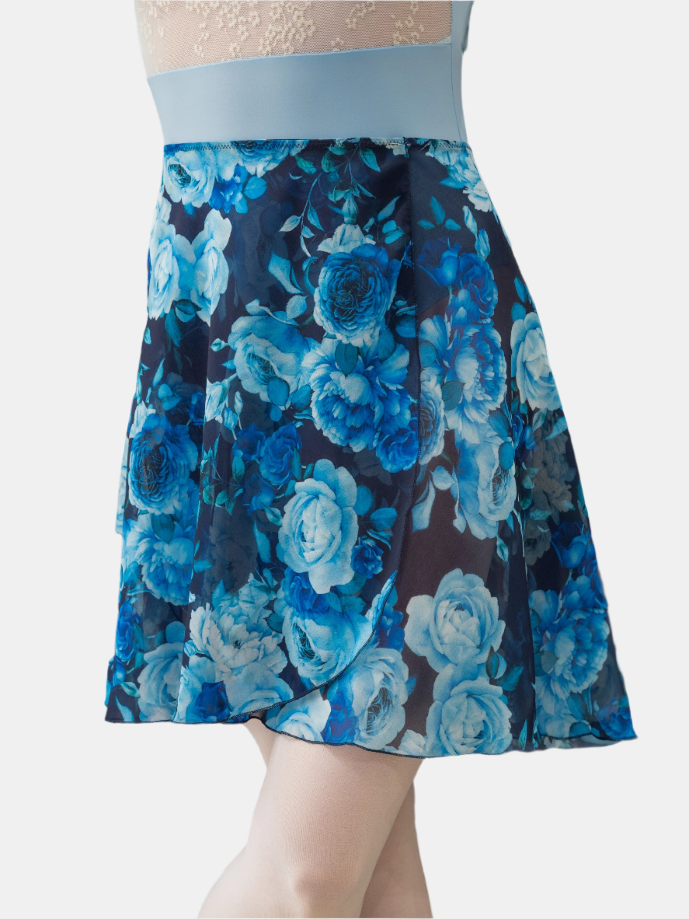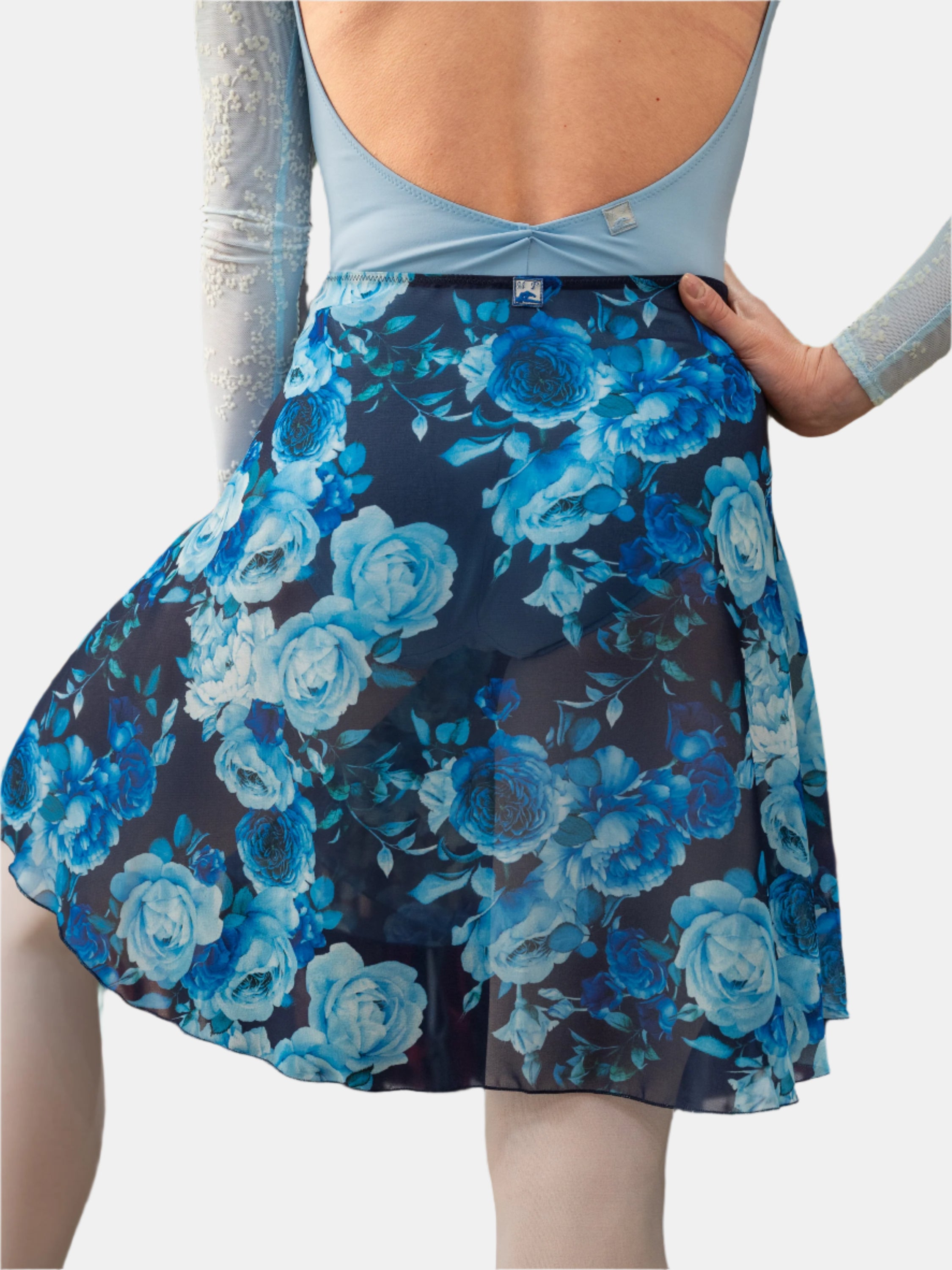 The MP339 navy floral long wrap skirt is perfect for use during your rehearsals or ballet classes. Designed to complement any dancer beautifully, this ballet skirt is made of Georgette, a sheer fabric that drapes elegantly on the body.